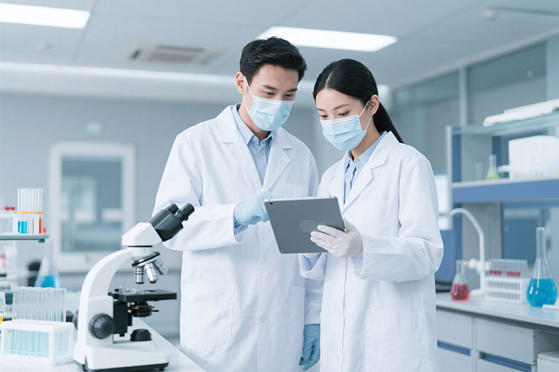 Scientists working in laboratory